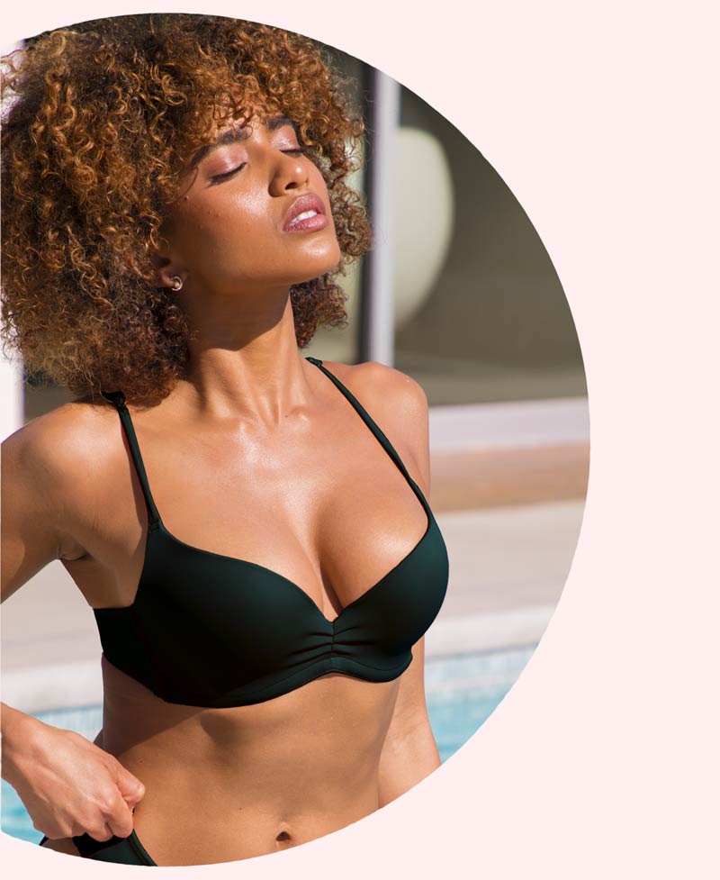 Upbra Swim Bikinis come in teal, olive, maroon, black,